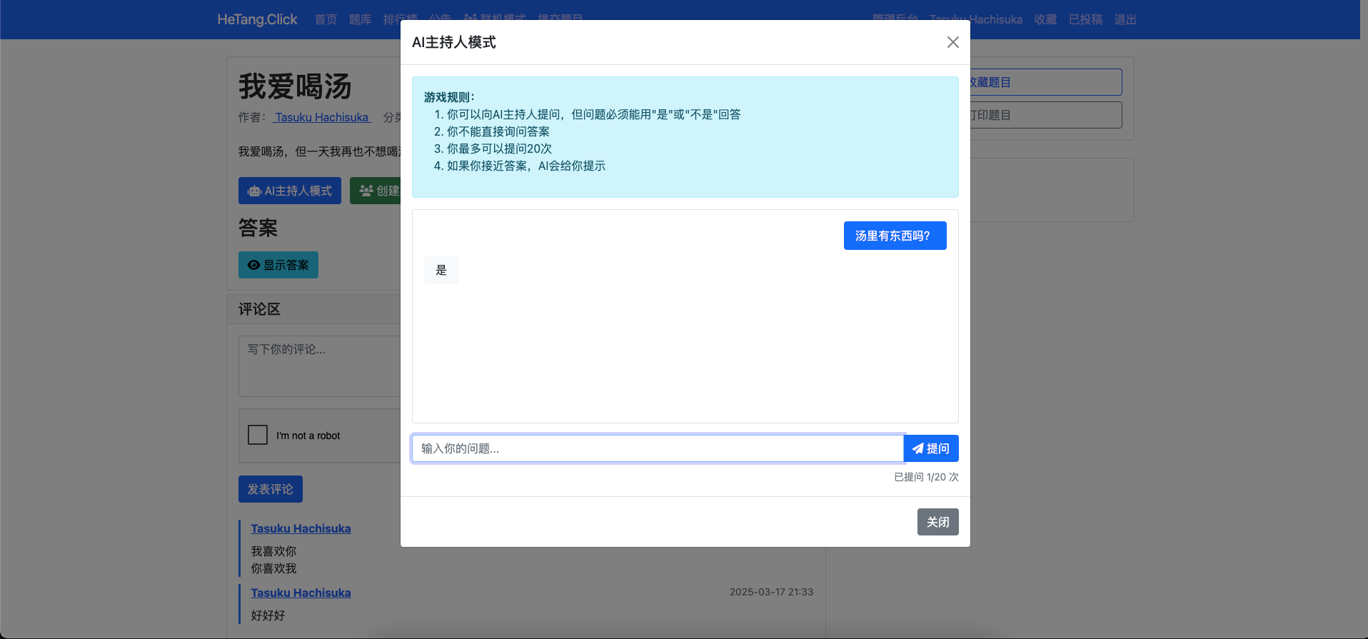 Hetang.click 立刻喝汤 AI海龟汤猜谜网站QQ群号 902039200