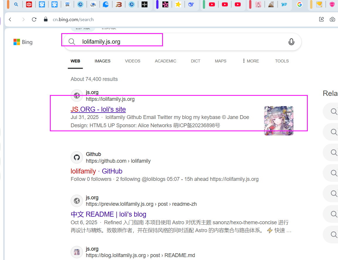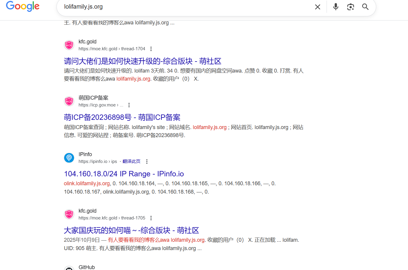 lolifam 怎么能瞧不起我的Github项目呢?我是说我的博客域名完全没任何结果的问题awa