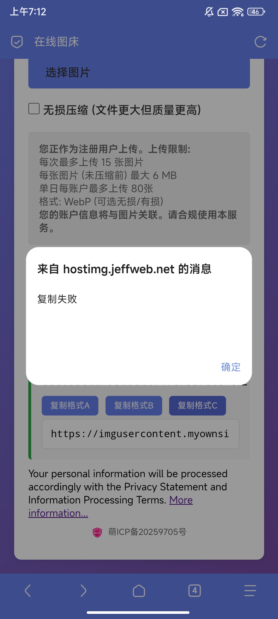 图床的存储空间为10GB, 图片上传时会被压缩为webp。