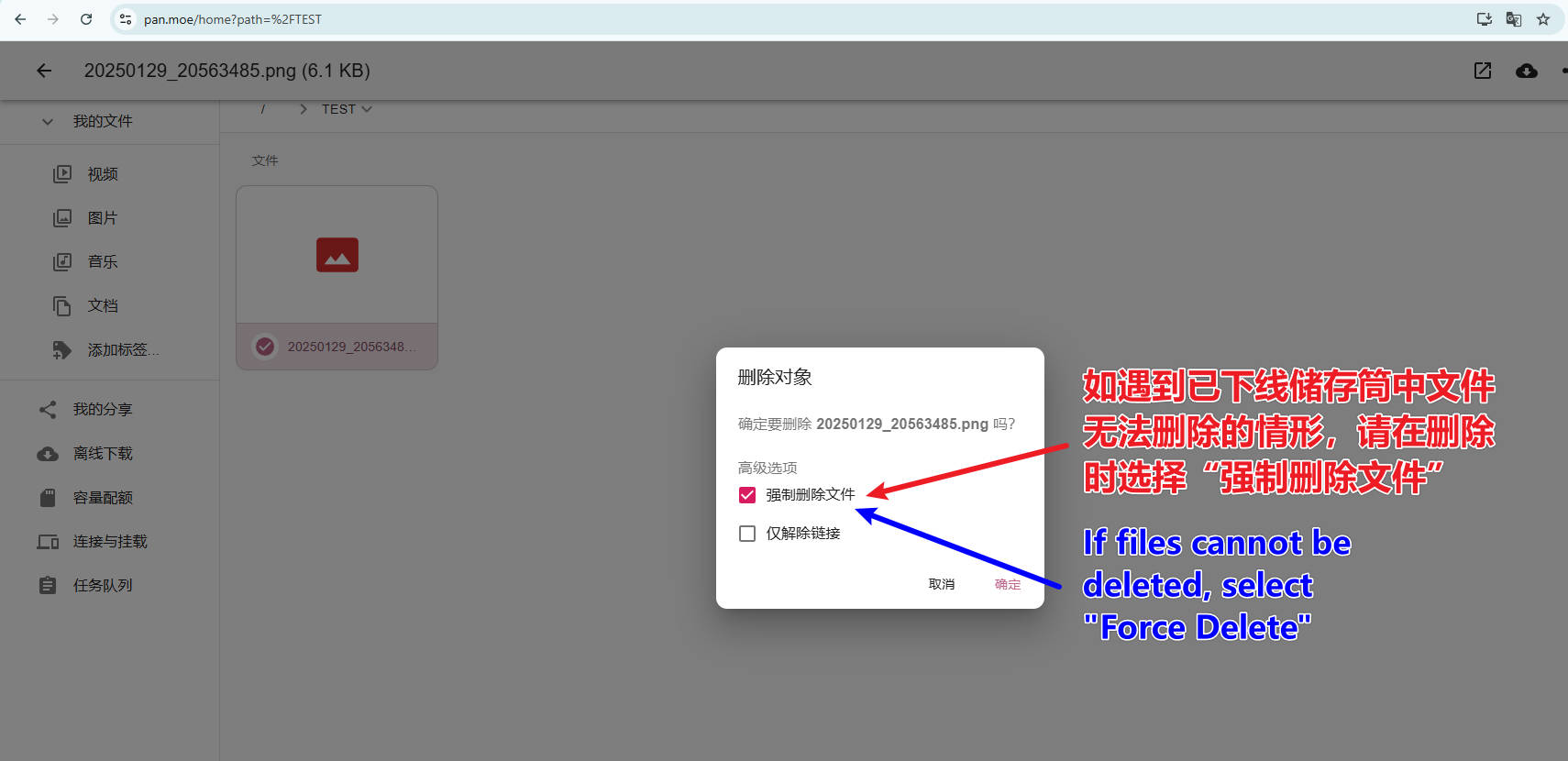 如有问题,请提交支持工单:https://pan.moe/support-form