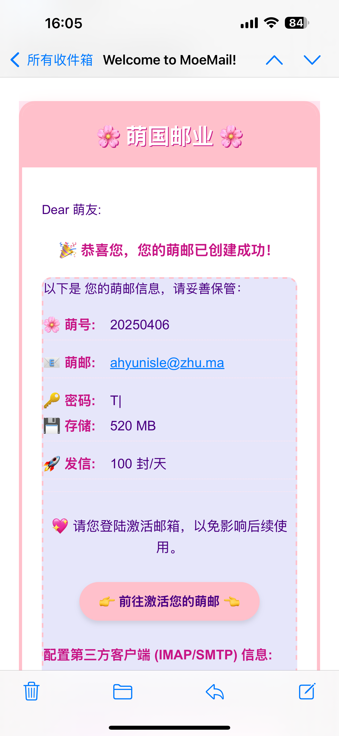今天下午看到萌邮创建成功,准备激活,提示凭证错误,emm我不知道该怎么办了。