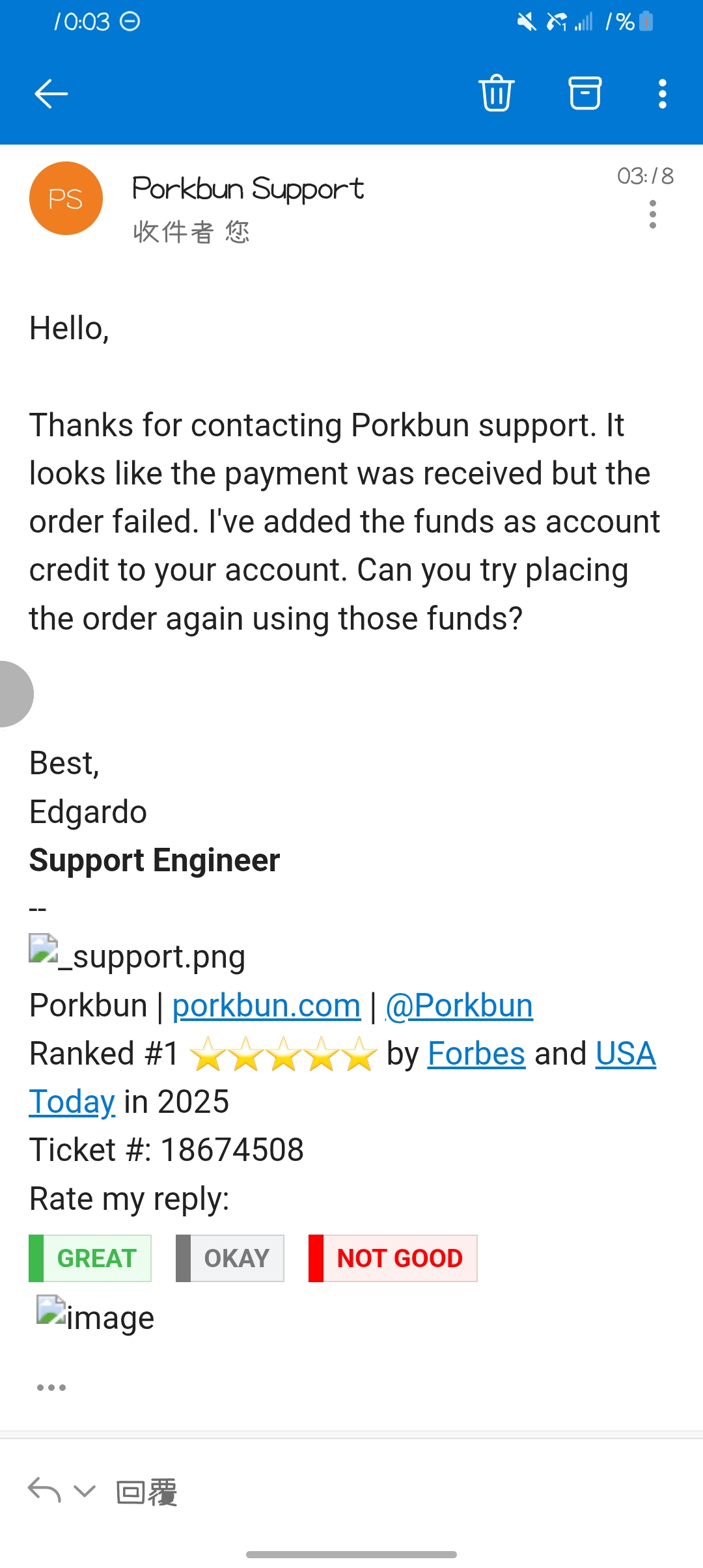 只能说客服太给力了诶嘿,昨天晚上发的邮件今天就回复啦喵~