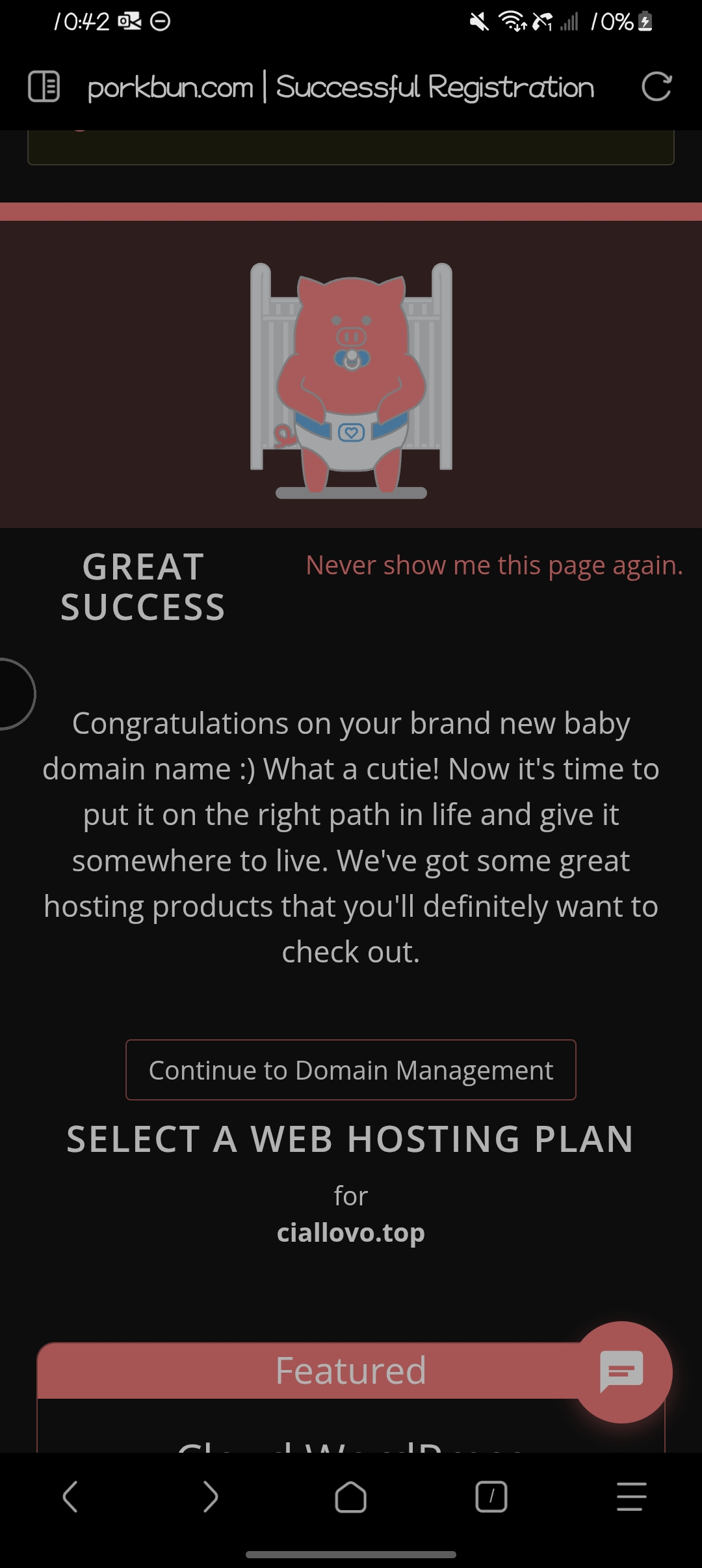 芹香serika 欸,听说猪肉包的支付系统很烂喵,而且我查询了这个域名现在还是可注册状态喵qwq,祝你找回自己的域名喵~,加油喵小蒜其实找人代付买top域名可以用spaceship的喵,spaceship的top很便宜 ...
