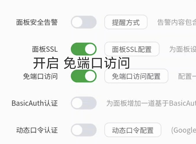 登录宝塔面板(地址和账号密码在雨云控制台查看),进入设置→安全管理→免端口配置→设置域名,粘贴Cloudflare源服务器证书保存