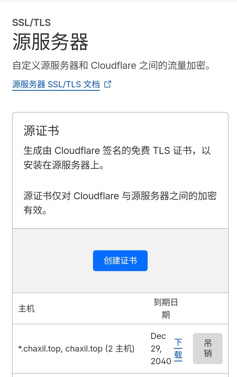 通过优惠码注册雨云后,进入控制台:总览→域名服务→域名注册。推荐.top后缀,首月和续费价格更低。域名审核通过后托管到Cloudflare,获取源服务器证书备用