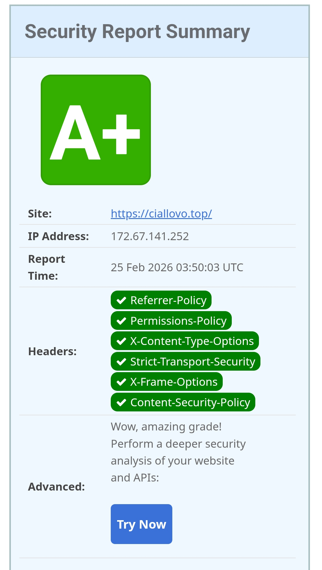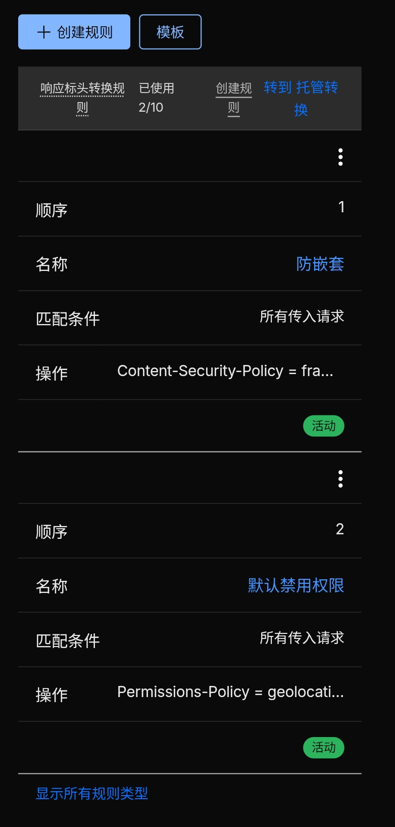server { ... } 核心代码块(不要动全局主配置的http块,这里只改单站)。server 块内任意空白处粘贴以下代码(可以按照注意里的提示自行修改):add_header Content-Security-Policy "default-src 'self' https://v1.hitokoto.cn https://hitokoto.cn; script-src 'self' 'unsafe-inline'; style-src 'self' 'unsafe-inline'; img-src 'self' data: *; frame-src 'self'; child-src 'self'; object-src 'self'; frame-ancestors 'self'; base-uri 'self'; form-action 'self'" always;