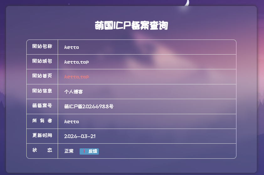 ketto 哦哦,感谢管理的提醒。原来萌号就是“萌ICP备20266988号”中的数字。